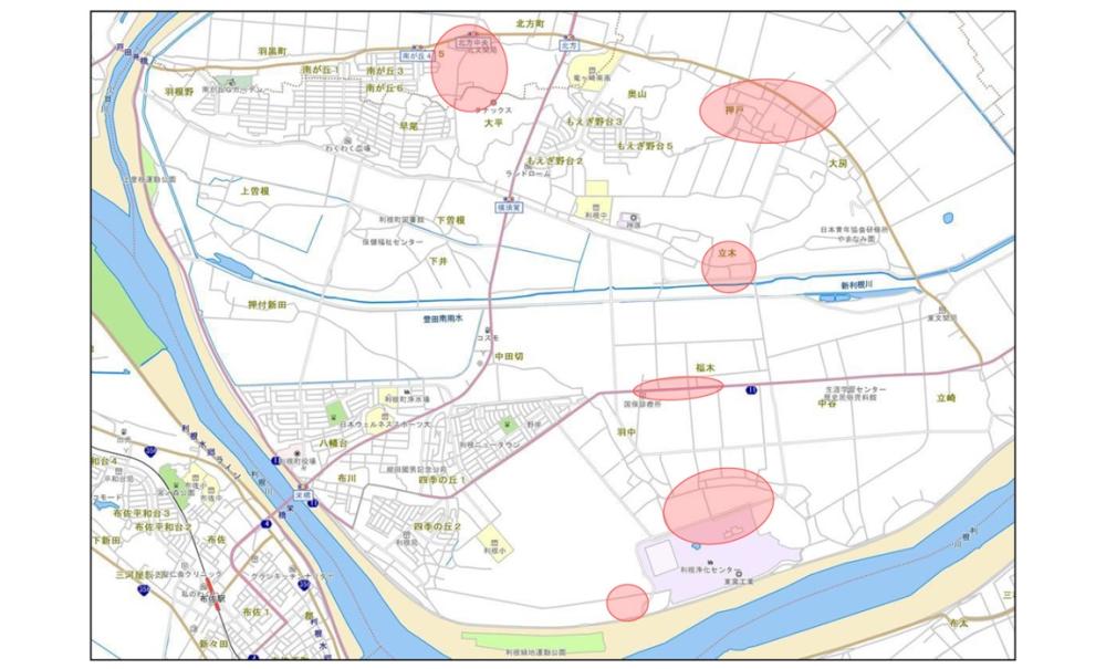 利根町内でイノシシの目撃情報が多く寄せられています。目撃情報があった場所の地図を公開しています。